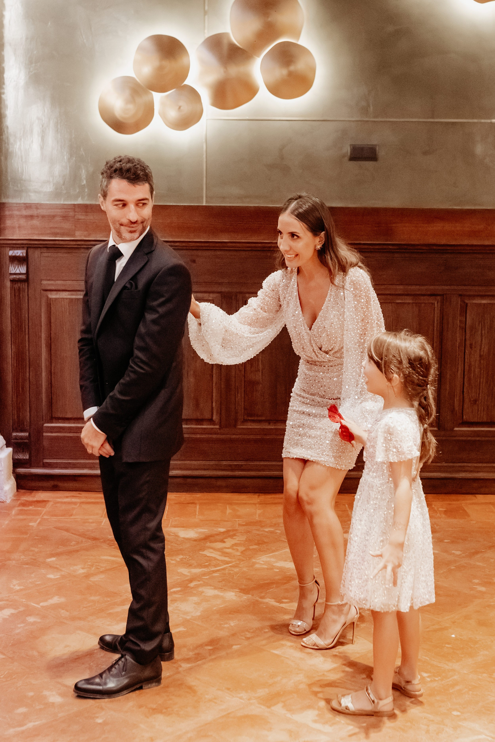 Durante el cóctel y el banquete, los invitados disfrutaron del entorno único de la bodega, mientras la luz del atardecer aportaba un tono cálido y envolvente a las fotografías. La fiesta fue el broche final perfecto: alegría, baile y emoción hasta el último momento.